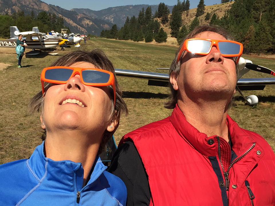The opportunity presented itself with the news that there was going to be a total eclipse of the sun. Some quarter of a million people were predicted to stream into the Pacific Northwest to witness the event. Bruce realized that Garden Valley was right in the path of totality for the eclipse. Bruce, Katie, and Bill blocked out the time on their calendars for a family camping trip, and Bruce sent an e-mail to the Idaho Department of Aviation requesting to reserve the group campsite. Bruce may have neglected to tell Bill at first that he’d decided it would be great to invite some friends — the entire membership of EAA Chapter 105 based in Hillsboro, Oregon.