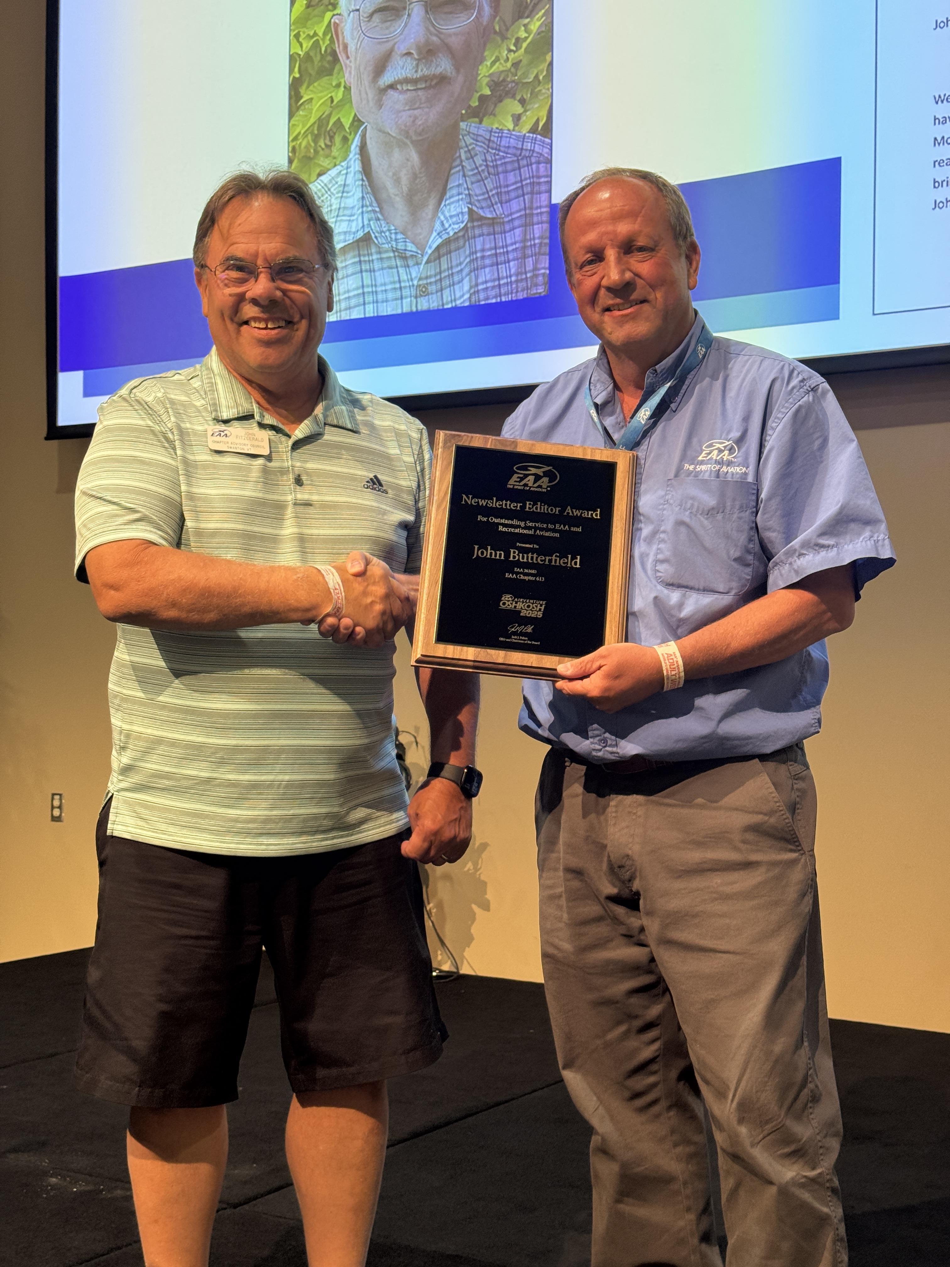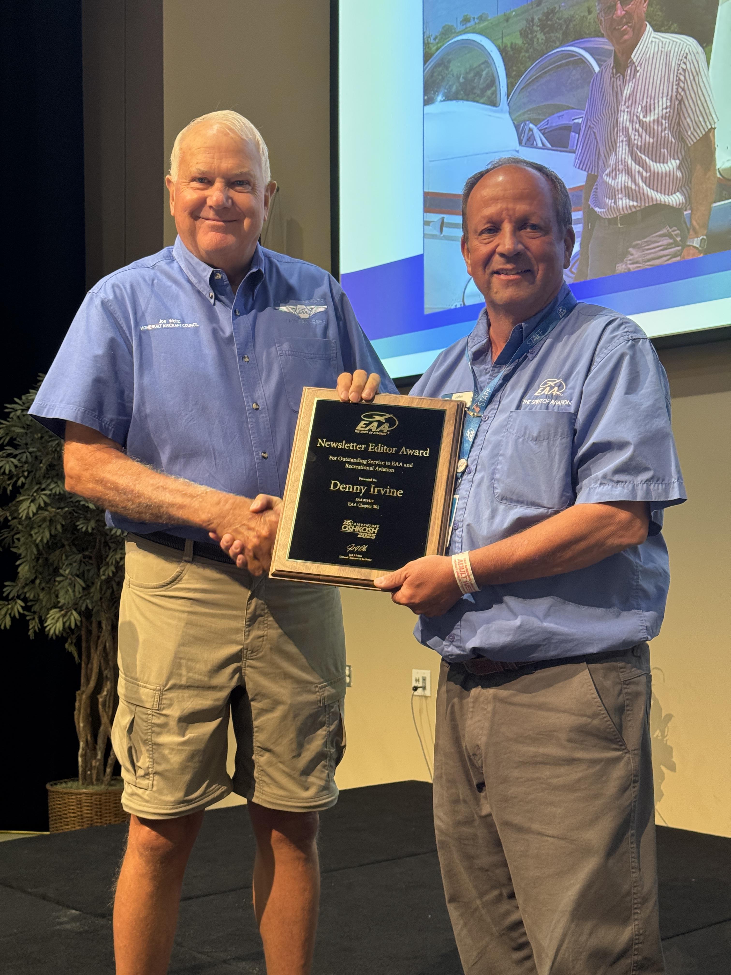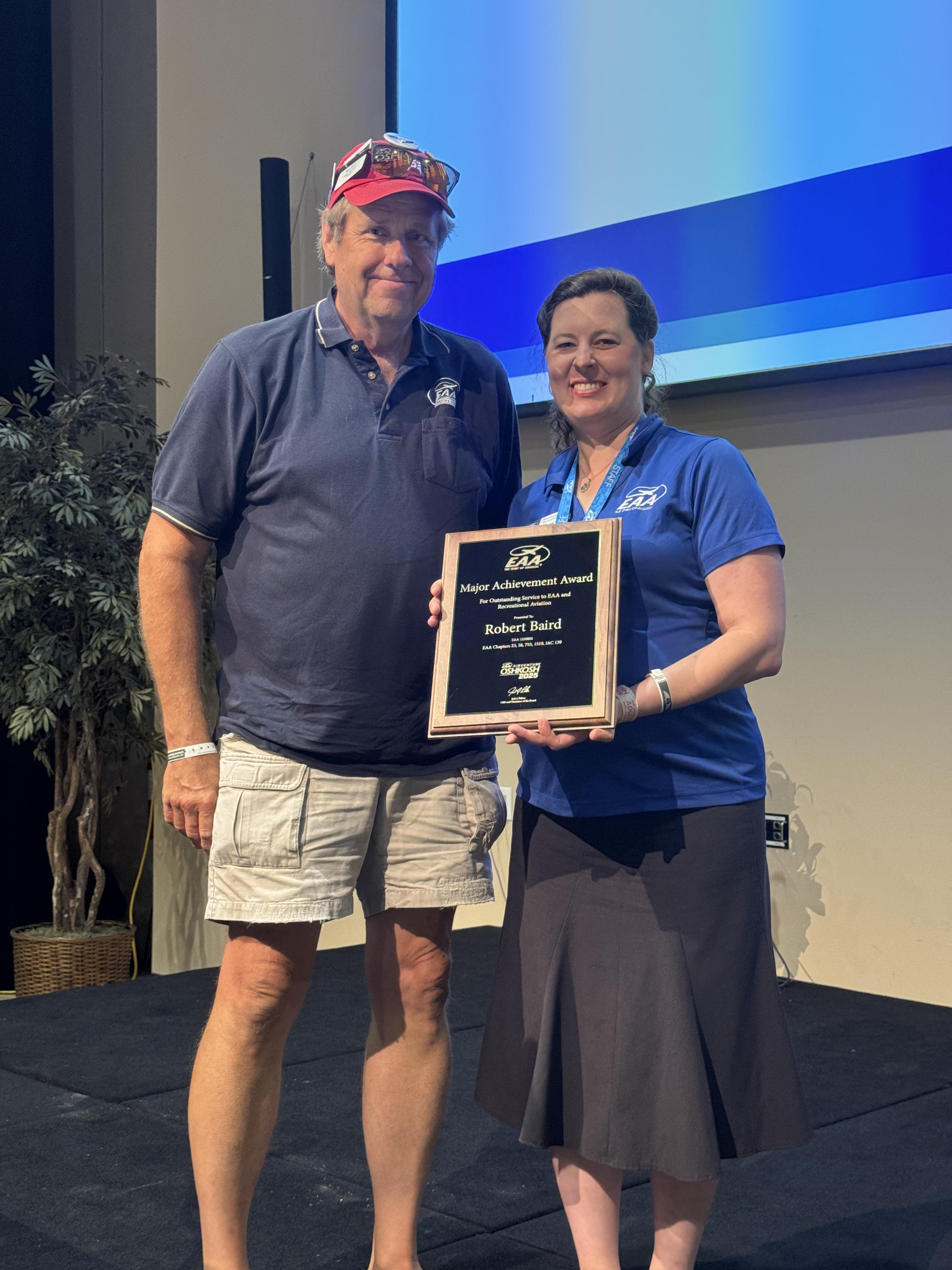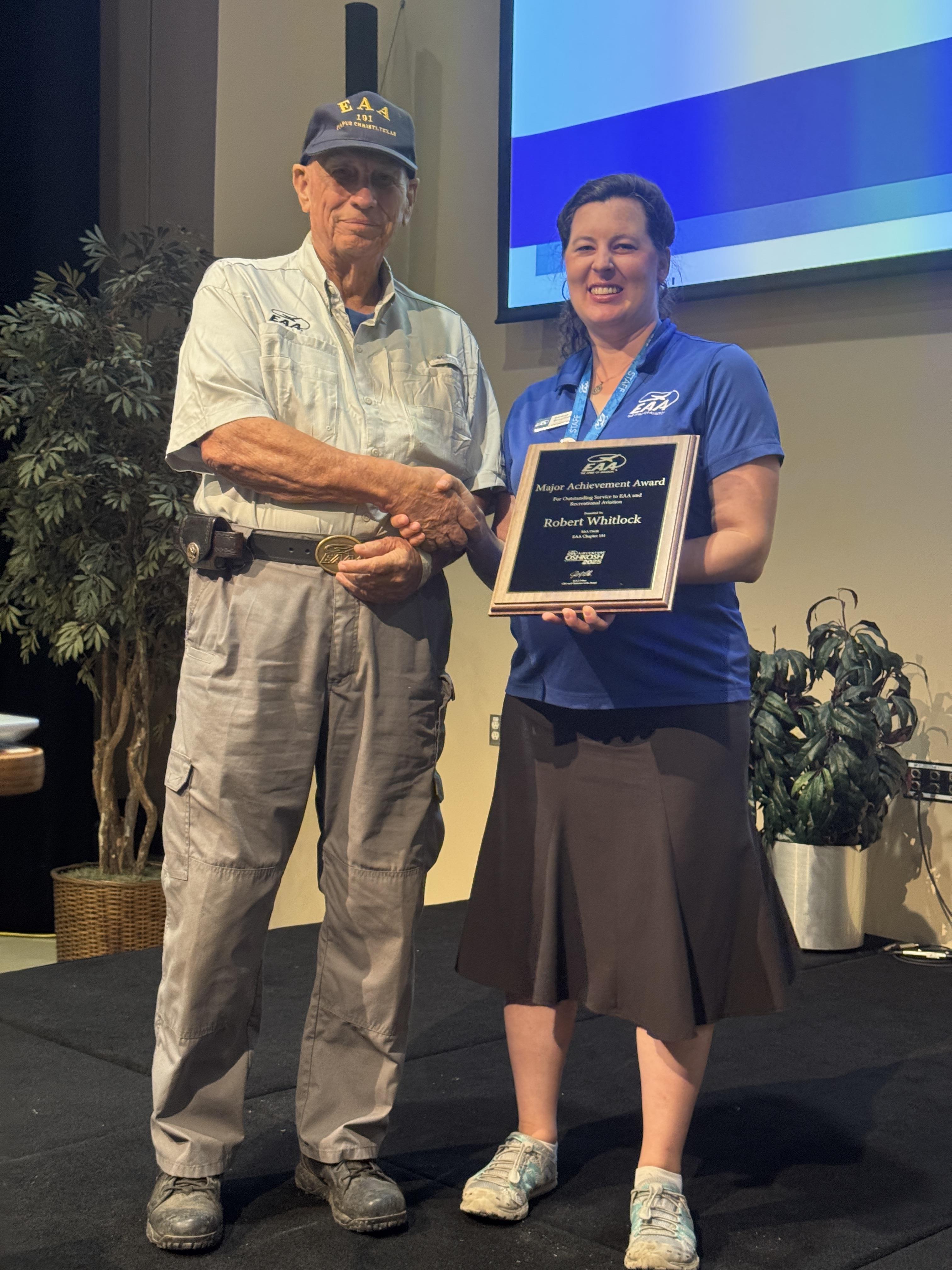 For these reasons, we are happy to present a chapter major achievement award to Robert Whitlock, who just attended his 20th AirVenture. Congratulations, Rob!