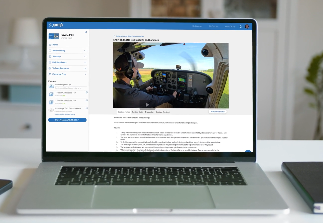 Mentors can view video progress and FAA practice test results through Sporty’s Flight Instructor Portal: