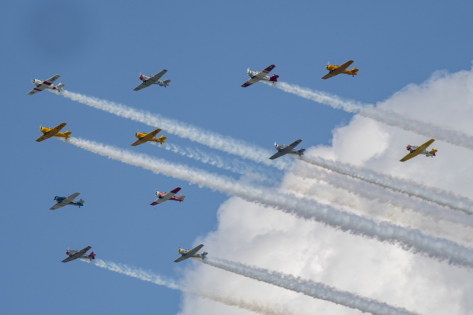 The activities will officially begin on Monday, July 20, with a mass warbird arrival that will populate the warbirds parking area at the north end of the Wittman Regional Airport flightline. Beginning on Tuesday, July 21, look for formation flyovers in the late morning, midday, and early afternoon prior to the daily afternoon air shows. These will include many of the aircraft that have participated in mass flyovers in past years. These flyovers will be coordinated to cause minimum disruption to AirVenture air traffic operations.