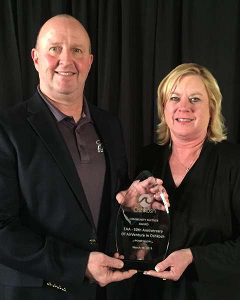 March 21, 2019 - This week, EAA received an inaugural Community Partnership Award from the City of Oshkosh in recognition of 50 consecutive years of EAA fly-in conventions in the city. The award came during Oshkosh’s annual State of the City program on March 18.