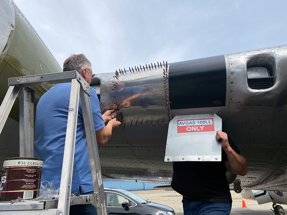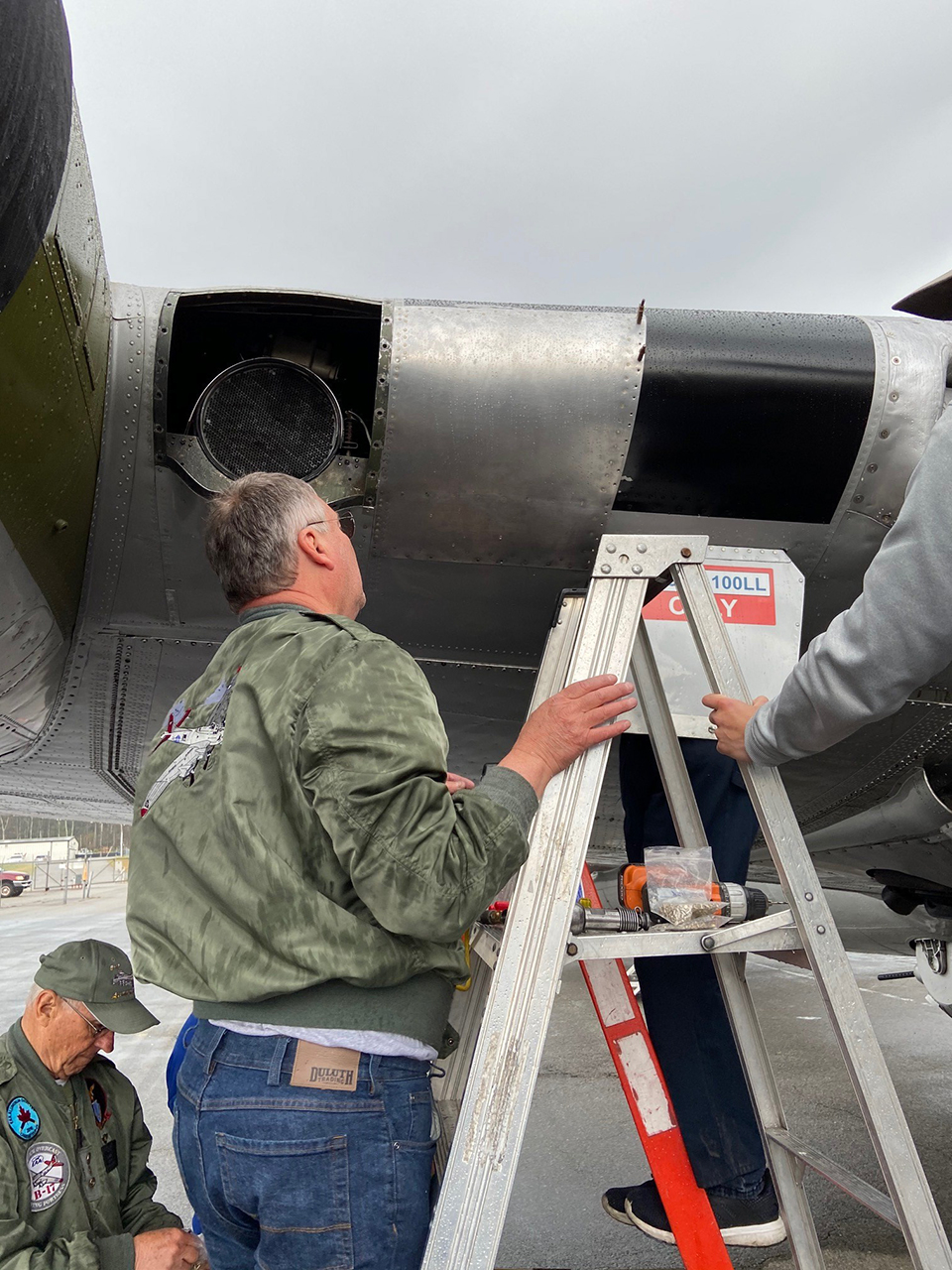 March 25, 2021 – EAA's Kermit Weeks Hangar aircraft technicians, B-17 Aluminum Overcast tour team, and EAA Chapter 690 members showed EAA's can-do spirit over the past few days in getting our B-17 back in the air after a bird strike last Saturday cut short the 2021 tour's very successful inaugural stop at Lawrenceville, Georgia.