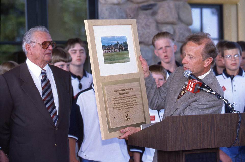 The Air Academy Lodge was a major element in Ray’s philanthropic support for EAA’s Vision of Eagles initiative in the 1990s, which was created to extend the association’s outreach to all ages but especially young people. The program built on the early success of the Air Academy and Young Eagles to create numerous opportunities to engage in aviation.