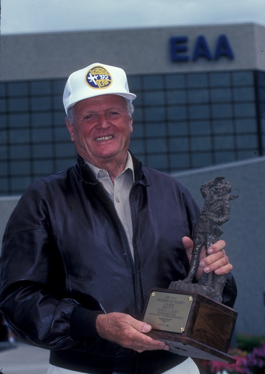 Ray received EAA’s highest honor, the Freedom of Flight Award, in 1992, and in 2009 had a thoroughfare on the AirVenture grounds named in his honor (James Ray Boulevard).