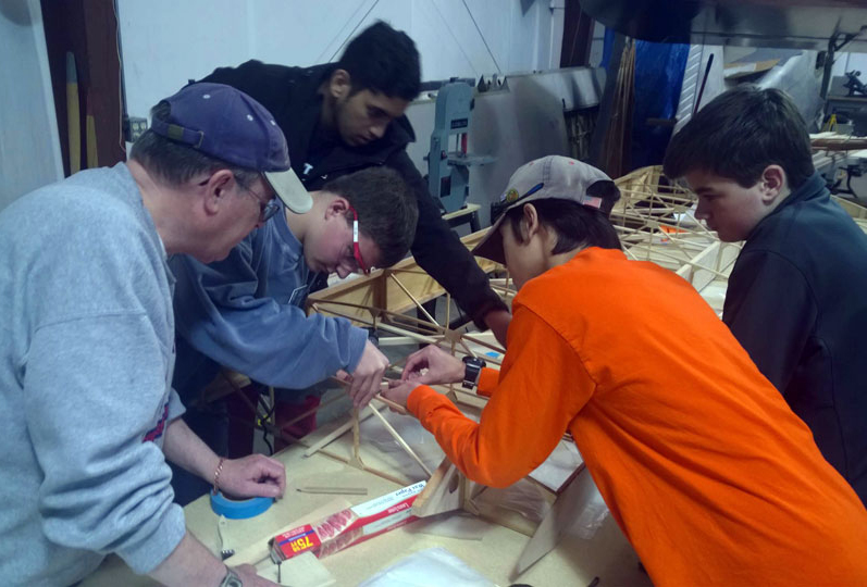 Chapter 690 then decided to expand upon that program and teach aircraft construction. The chapter found an Ultralight Pietenpol project that was partially completed and we purchased it last summer. The fuselage was mostly completed as well as the wing ribs. The chapter put together a mentor group of chapter members with wood and fabric airplane experience and last October they met with the youth for the first time.