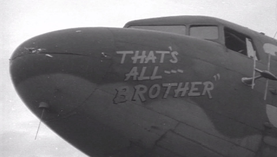 Five hours before the D-Day beach landings began, the transport plane led a formation of more than 800 aircraft that dropped 13,000 paratroopers behind enemy lines. Historic film, shot as the airplane departs on its D-Day mission, shows it was equipped with an early form of airborne radar to guide the invasion force to the drop zone. The aircraft was named That’s All, Brother as a personal message to Adolf Hitler that, with the Allied invasion of Europe, his plans were done.
