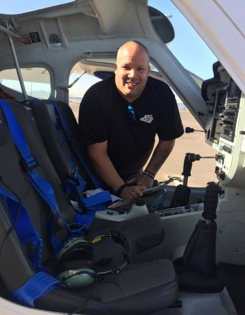 In December 2015 my girlfriend, Regan Goldring, and I went to Las Vegas for a weekend trip and had a helicopter tour. Regan turned to me and said she had “a great time and loved flying” and that was it! Hearing this from her made me think I needed to be a pilot. Within a number of hours, I contacted several flight schools in Arizona and found out about the sport pilot certificate, which meant I would not have to take a medical exam to become a pilot. Once again, though, I was informed that with the stuttering disorder I may not pass the checkride, but within a few weeks I passed the checkride and am now a sport pilot.