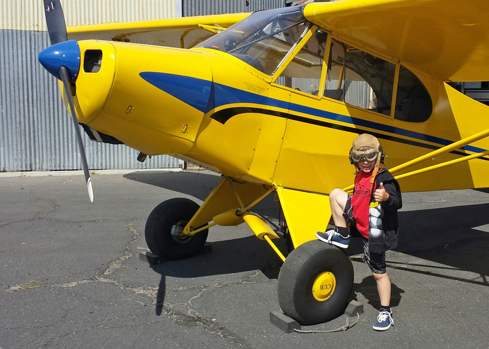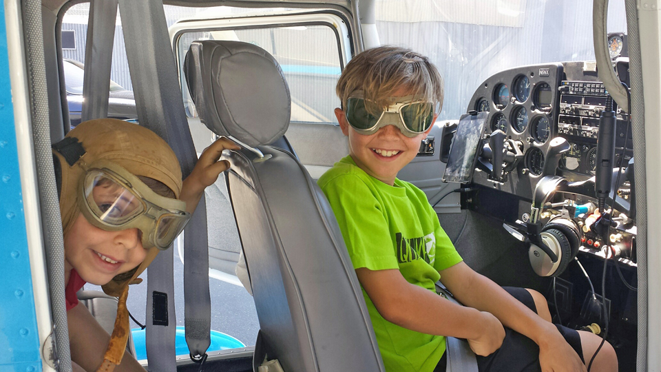 July 7, 2016 - I took my grandsons to the historic Santa Paula airport for their every first Sunday fly-in and air show last month. Both Cooper and Nate insisted on wearing my dad’s B-24 vintage World War II goggles the whole day. A young man with a beautifully restored Cessna offered them a ride and they excitedly went for their first flight in a small airplane. What a wonderful gift that was and we are thankful for Jim’s generosity for sharing his airplane with these impressionable young children.