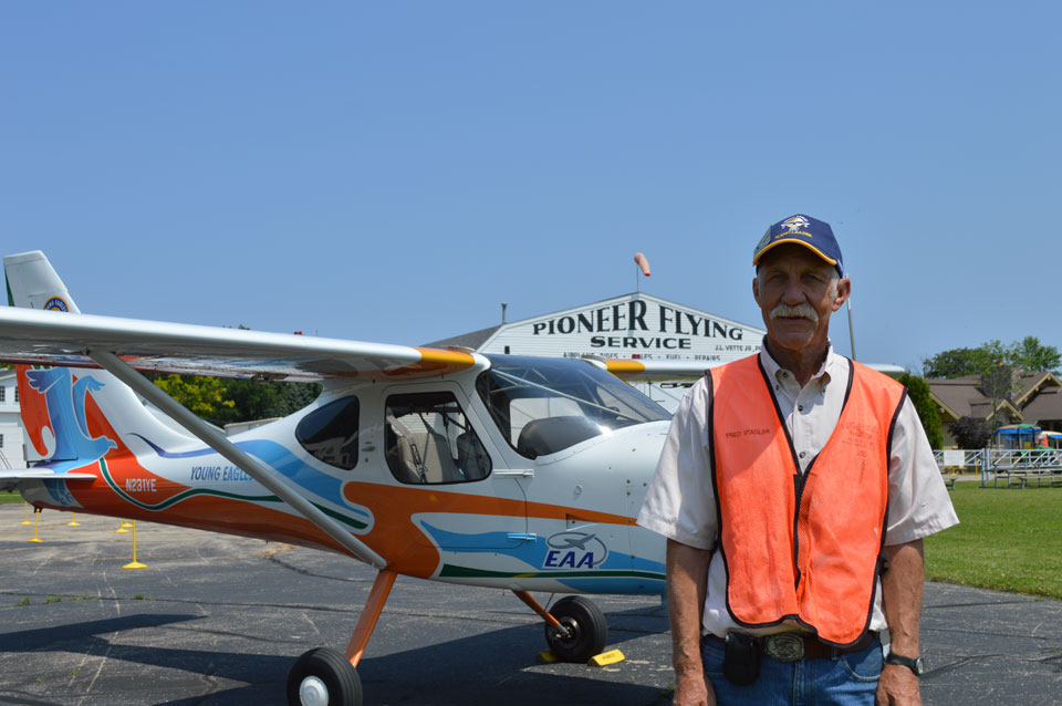 July 9, 2015 - EAA’s Fred Stadler, volunteer pilot at EAA’s Pioneer Airport, achieved an unprecedented milestone on July 1 by logging his 6,000th Young Eagle flown – the most ever by an individual pilot. Stadler, EAA 37882, made the flight at Pioneer in EAA’s Young Eagles GlaStar N231YE.