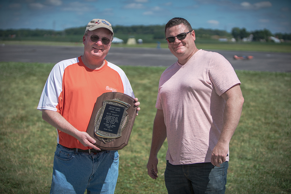 July 30, 2020 – On Saturday, July 18, at the International Aeromodeling Center in Muncie, Indiana, Tyler Dobbs of the Academy of Model Aeronautics presented EAA Vice President of Advocacy and Safety Sean Elliott with the AMA Distinguished Service Award. This award was accepted by Sean on behalf of EAA for advocating on "critical issues facing the future of model aviation."