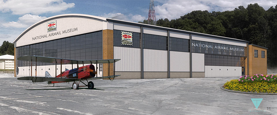 With the historical site designation, Smith Field was safe. Now it was time to figure out how to best use the space, and the hangar. Once Bob came up with the idea for the airmail museum, the group, known as The Friends of Smith Field, hired Tessellate Studio out of New York City to present a preliminary concept of the plan, including images of what the museum and surrounding facilities would look like once work is completed.