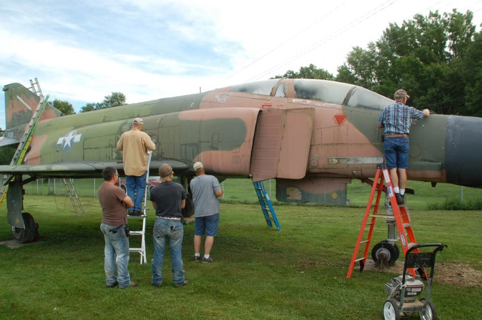 August 25, 2016 - EAA Chapter 675 of Marshalltown, Iowa, was approached by the Marshalltown American Legion Post 46 with the request for our assistance in cleaning and painting the Legion’s F-4 Phantom. As caretaker of the F-4, the U.S. Air Force requires the Legion to keep the aircraft in good visible shape. The Marshalltown F-4 was in definite need of a cleanup and new paint. The American Legion sought out Chapter 675 to help thinking that we had aircraft experience, which was of course true. We gladly volunteered our time and helped with some financial assistance.