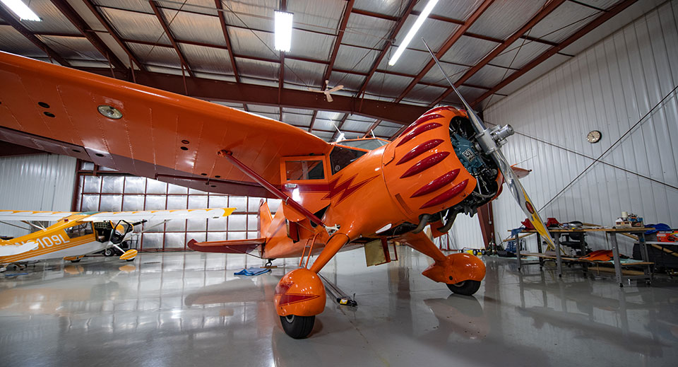 Meanwhile, the Reliant, one of the most classic designs of the 1930s, features an orange paint job and red trim, Lycoming engine, and a beautifully restored instrument panel.