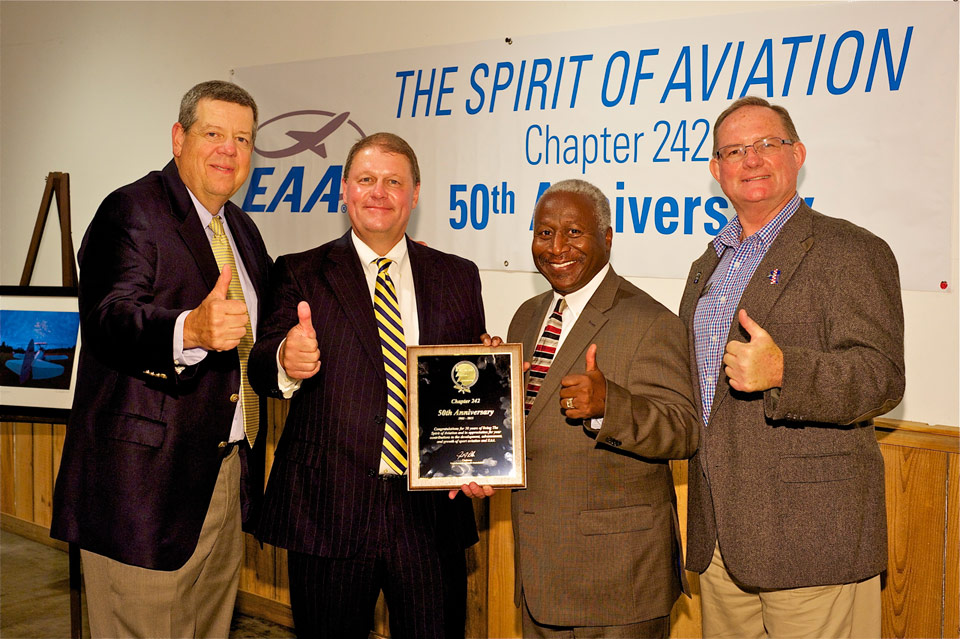 September 3, 2015 - Rick Larsen, EAA’s vice president of Communities and Member Programs, and Brett Hahn, EAA’s chapters manager, visited Chapter 242 in Columbia, South Carolina recently to help celebrate the chapter’s 50th anniversary. Join us in congratulating President Jim Herpst and all the officers and members of this vibrant chapter on this remarkable milestone!