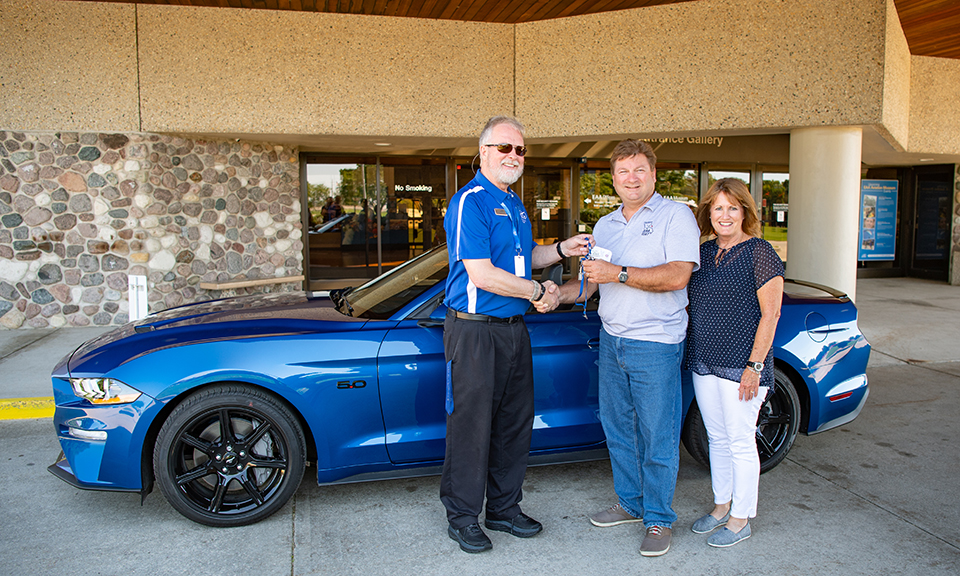 September 17, 2018 - Joe, EAA 725810 and Kathy, EAA 1181912, Veile came to EAA headquarters on Monday to collect their new 2018 Ford Mustang GT Convertible after they purchased the winning ticket for the 2018 Young Eagles Raffle.