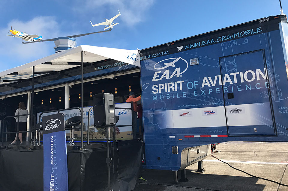 “We want to promote EAA, our passion for flight, and our mission of growing participation in aviation in a way that’s fun and engaging,” said Dave Chaimson, EAA’s vice president of marketing and business development. “The Spirit of Aviation mobile marketing unit brings EAA to life through immersive activities and virtual reality experiences, giving visitors a glimpse into the world of aviation, as well as inviting them to be part of EAA’s dynamic, growing, and innovative member community.”