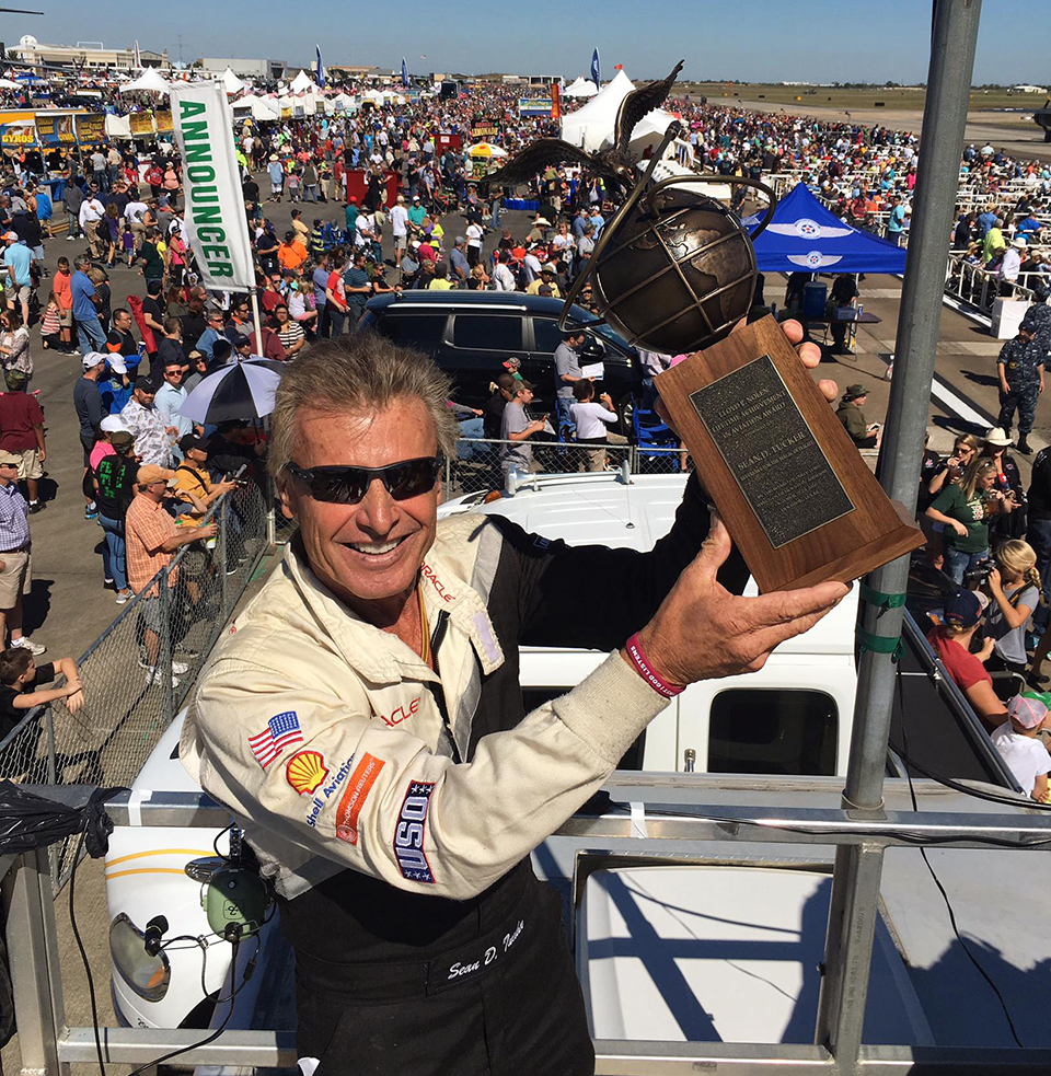 October 27, 2016 - Young Eagles program chairman Sean D. Tucker last weekend received the latest of his numerous honors and awards, as the Commemorative Air Force (CAF) Wings Over Houston Airshow presented him with its Lloyd P. Nolen Lifetime Achievement in Aviation Award.