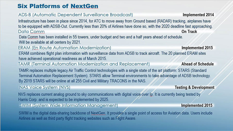 The FAA review showed that three of the six primary technology platforms of NextGen have already been implemented, two others are ahead of schedule, and the final one (digital voice systems) is in testing to meet a deadline in 2025. In contrast, ATC privatization proponents have offered no specific timelines or financial data that shows any specific cost savings or timeline improvements in a privatized system.