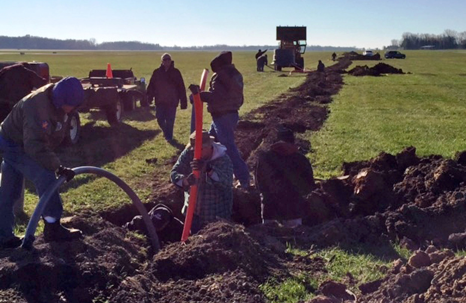 The group, consisting of the volunteers from the AirVenture Communications Center “Green Gang” and EAA Chapter 101 of Addison, Illinois, dug right in – literally. They trenched along the main flight line and placed nearly 4,700 feet of inner duct in the ground that will be used improve the speaker system for the AirVenture air show and public address uses.
