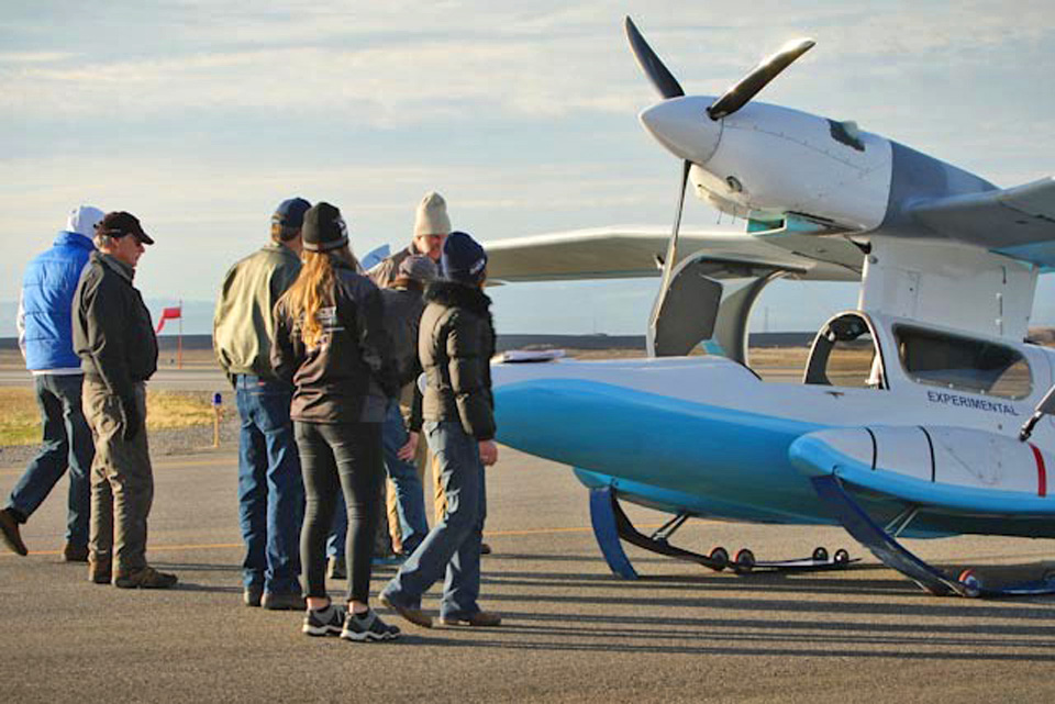 I have claimed that the most fun anyone can have at an airport is to watch the first flight of a new type. Yesterday our test team preflight briefed the first flight, took off from runway 06 at KCOE, flew for 1.8 hours and landed back on 06. The aggressive test card included all the basic stability and control flight tests with the cruise configuration and with flap down and skis extended. All maneuvers on the card were performed on this first flight. Speeds for first flight were limited to less than 80 knots and altitude to less than 8,000 feet.