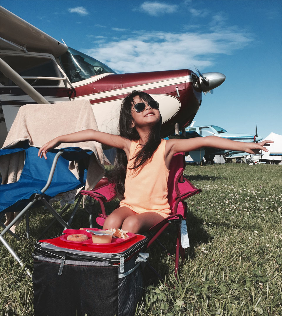 The original plan was to fly 7760C to Florida and then ship it in a container to Uruguay, but I fell in love with KLVK — such an awesome airport full of high quality airport bums and awesome airplanes — that I decided to leave the airplane permanently in California. Last July, I flew 7760C with my 4-year-old daughter to Oshkosh! We camped the whole week at Vintage, and we were one of the last airplanes to depart Oshkosh on Monday.