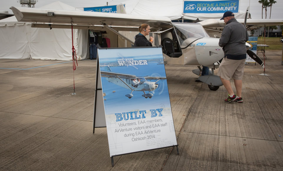 EAA has seen a lot of activity so far at its exhibit in Tent C, and many visitors are seeing the well-known One Week Wonder Zenith CH 750 Cruzer airplane for the first time. Thousands of people had a hand in building the light-sport aircraft last year during EAA AirVenture Oshkosh, and those who are seeing it for the first time are coming away impressed and pleased that EAA has decided to fly the airplane down from Oshkosh.