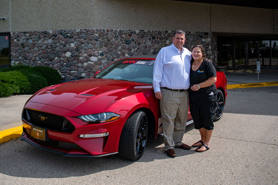 September 9, 2021 – Juliana Hart, winner of the 2021 Young Eagles Mustang Raffle, and her husband Michael picked up their brand-new 2020 Ford Mustang GT convertible on Thursday, September 2.