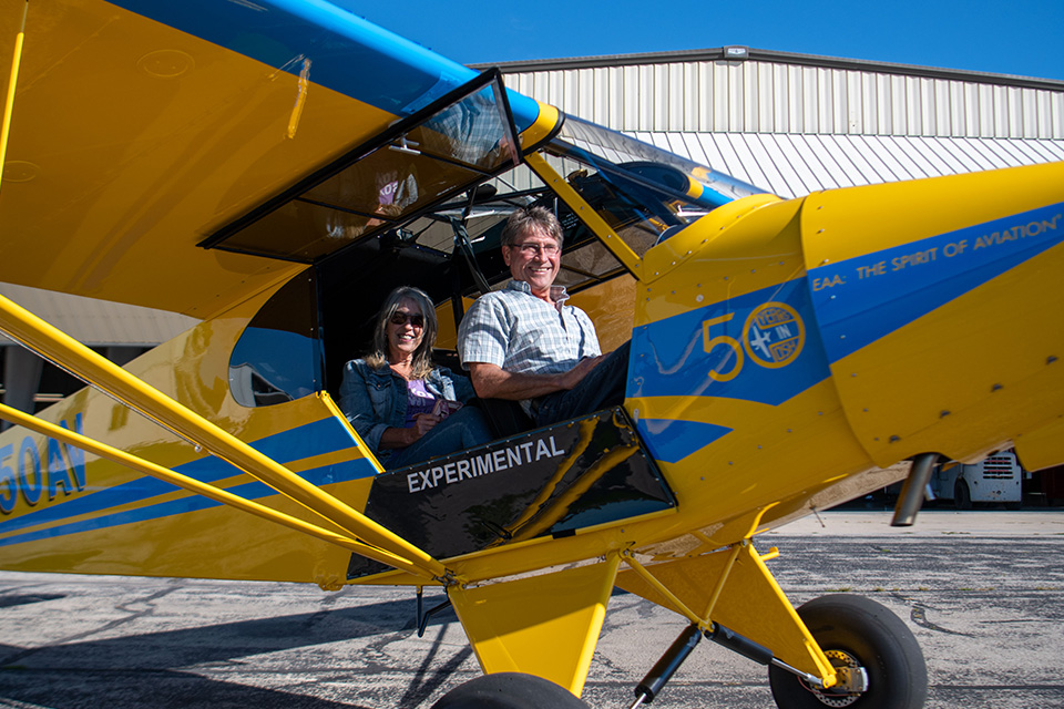 Mark Kaidan, EAA 463449, of Brooklyn, Michigan, officially became the custodian of a PA-18 replica, the grand prize of EAA’s Great 2021 Aircraft Raffle, on Wednesday, Sept. 8, when he came to Oshkosh to sign paperwork with his wife, Jean.