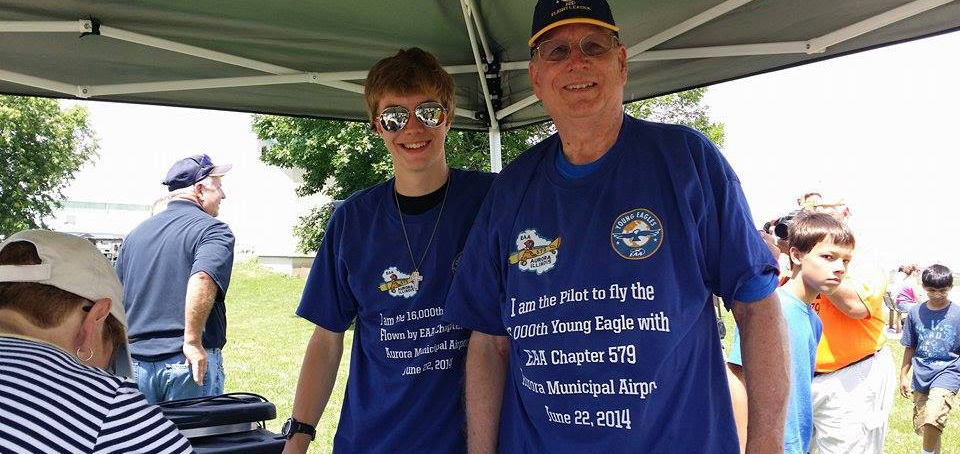 Pilot and Young Eagle were presented with special shirts to commemorate the occasion. Babb’s read, “I am the 16,000th Young Eagle Flown by EAA Chapter 579 – Aurora Municipal Airport, June 22, 2014,” while Hislop’s said, “I am the Pilot to Fly the 16,000th Young Eagle with EAA Chapter 579...”
