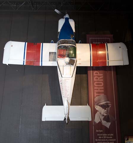 EAA’s Thorp T-18 belonged to Don Taylor and has a unique place in history. Don built his T-18 for a specific purpose — to complete the first around-the-world flight in a homebuilt aircraft. Don studied several different designs and decided that the Thorp T-18 would be the most adaptable. He fitted it with a 180-hp Lycoming O-360, a full IFR instrument suite, supplemental radios and, of course, extra fuel tanks.